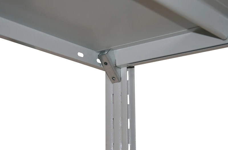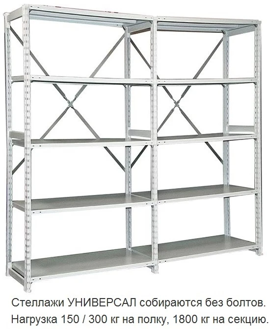 - Стойки и полки соединяются между собой без болтов. Полки крепятся на кронштейны, при этом для сборки не требуется специальных инструментов.