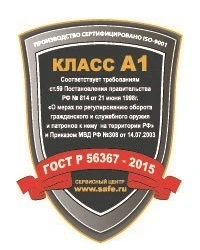 — По итогам тестов на степень устойчивости к взлому отнесён к классу S1 по ГОСТ Р 55148-2012, что соответствует классу оружейных сейфов А1 согласно ГОСТ Р 56367-2015.