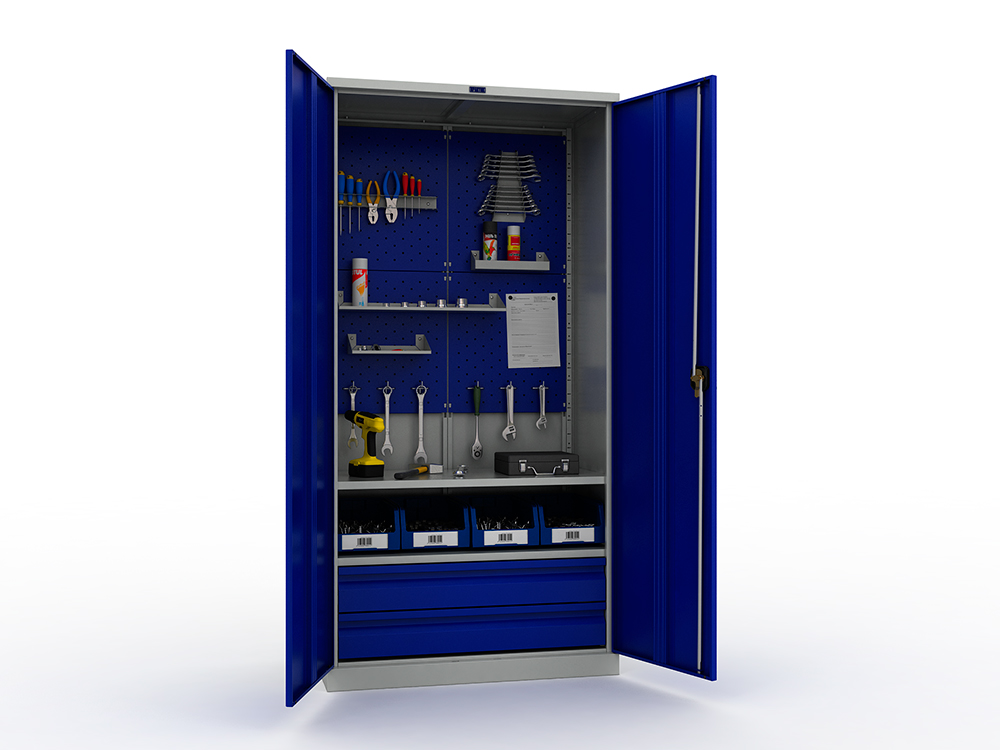 Предназначен для хранения различных инструментов и приспособлений, а так-же запасных частей и расходных материалов в мастерских, цехах и производственных помещениях.Шкафы для инструментов TC-1995 можно индивидуально скомпоновать под свои нужды выбрав необходимые вам комплектующие: перегородки, ящики (большие выдвижные ящики TCF 87x45 или малые выдвижные ящики TCF 42x45) так-же можно выбрать различные полки или перфорированный экран.