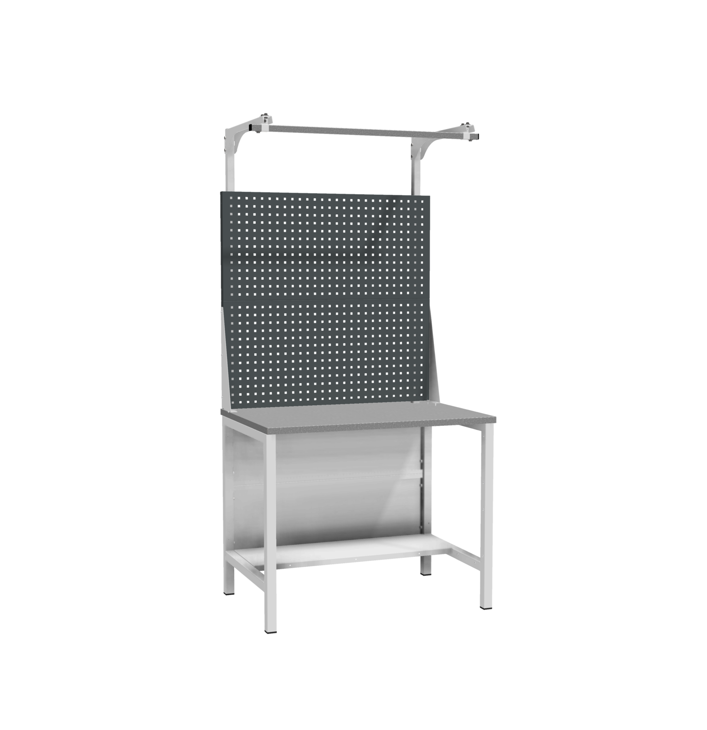 Экраны выполняют две функции: защита стены или пространства за верстаком, а также размещение подвесных аксессуаров и держателей для инструментов. Экраны перфорированы частым шагом 35 мм.